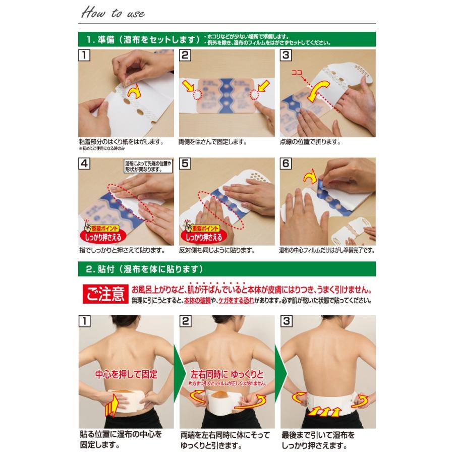効果的な湿布の貼り方 捻挫や打撲などで熱をともなうときは冷湿布を使います。 冷湿布は冷蔵庫で保存しておくと、より効果的です。 湿布の形は2タイプあり、急性の痛みにはパップ剤、慢性的な痛みにはテープ剤が良いとされています。 足裏湿布の貼り方 足裏湿布の効果をより強く実感するには、正しい貼り方を実践しましょう。 足ツボマッサージと同様に、湿布を貼る場所によって得られる効果が変わってきます。 足の裏に湿布を貼るべきタイミングや貼るときの注意点について見ていき膝への貼り方 薬面を患部(膝頭)に貼り、片方のフィ 3 ルムをゆっくりはがしながら貼ります。 もう片方のフィルムもゆっくりはがし 4 ながら貼ります。 5完成です。 1フィルム側を手前にして左右を持ちます。 左右に引っ張ると、フィルムの真ん中が 2