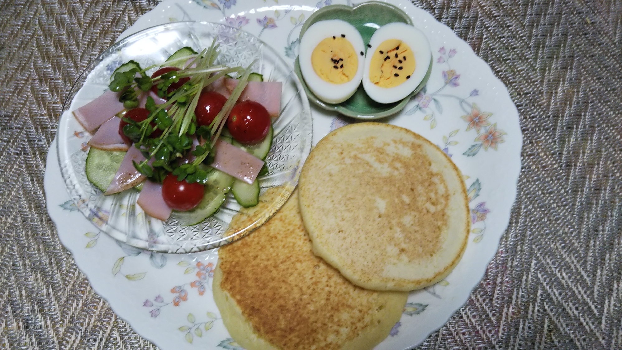 ホットケーキとハム野菜サラダと茹で卵のランチ レシピ 作り方 By ミニー7015 楽天レシピ